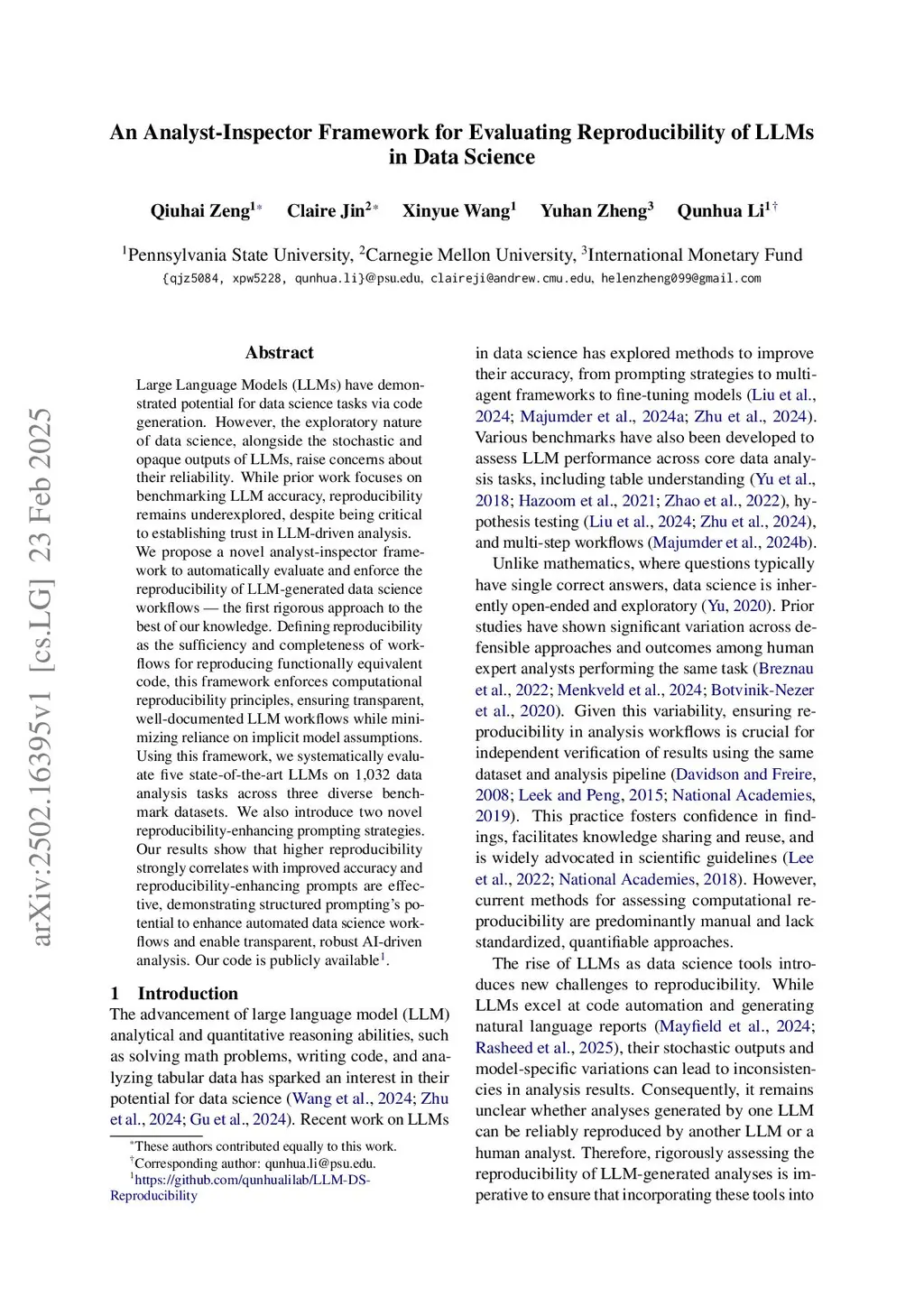 AIRepr: An Analyst-Inspector Framework for Evaluating Reproducibility of LLMs in Data Science