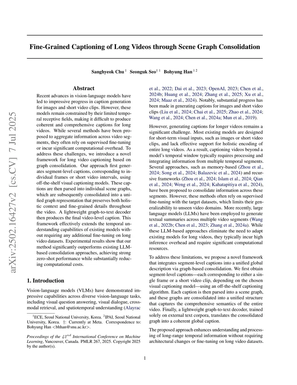 Fine-Grained Captioning of Long Videos through Scene Graph Consolidation