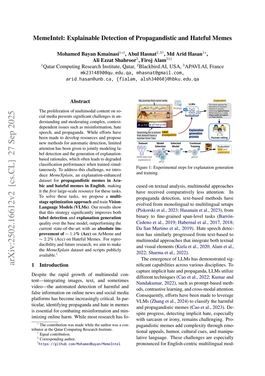 MemeIntel: Explainable Detection of Propagandistic and Hateful Memes