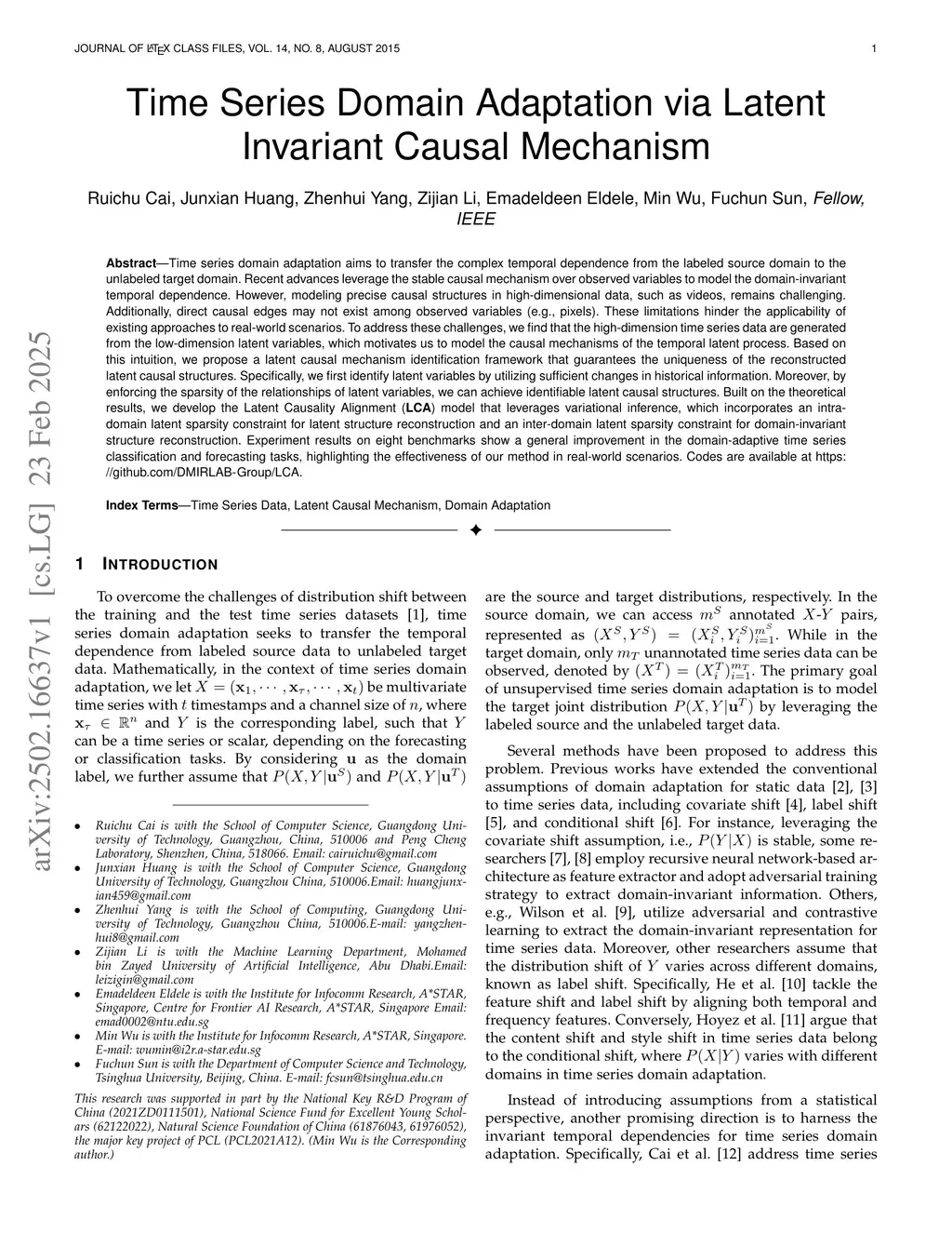 Time Series Domain Adaptation via Latent Invariant Causal Mechanism