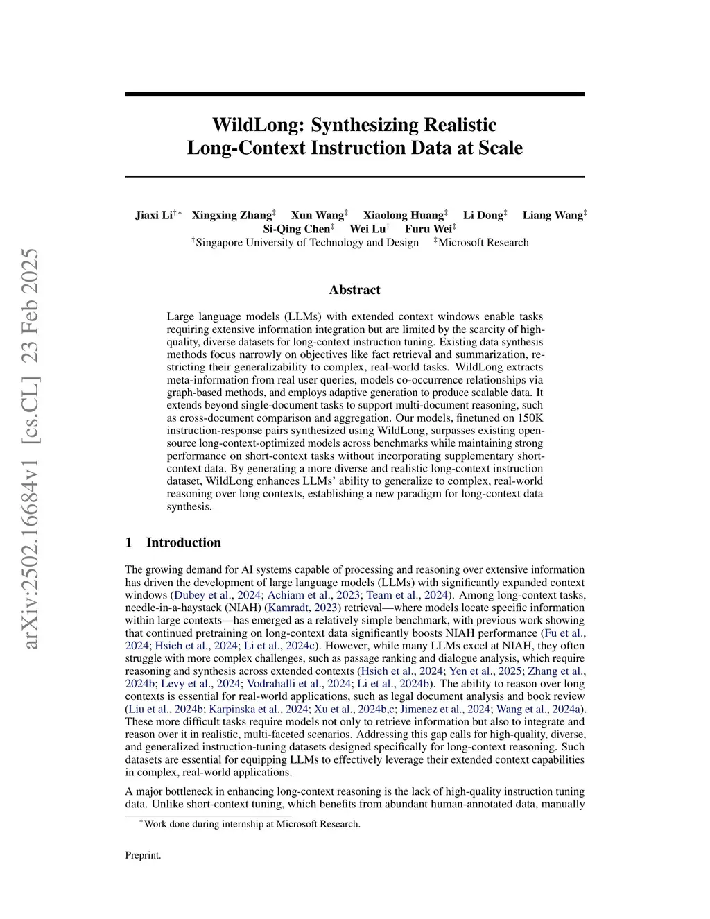 WildLong: Synthesizing Realistic Long-Context Instruction Data at Scale