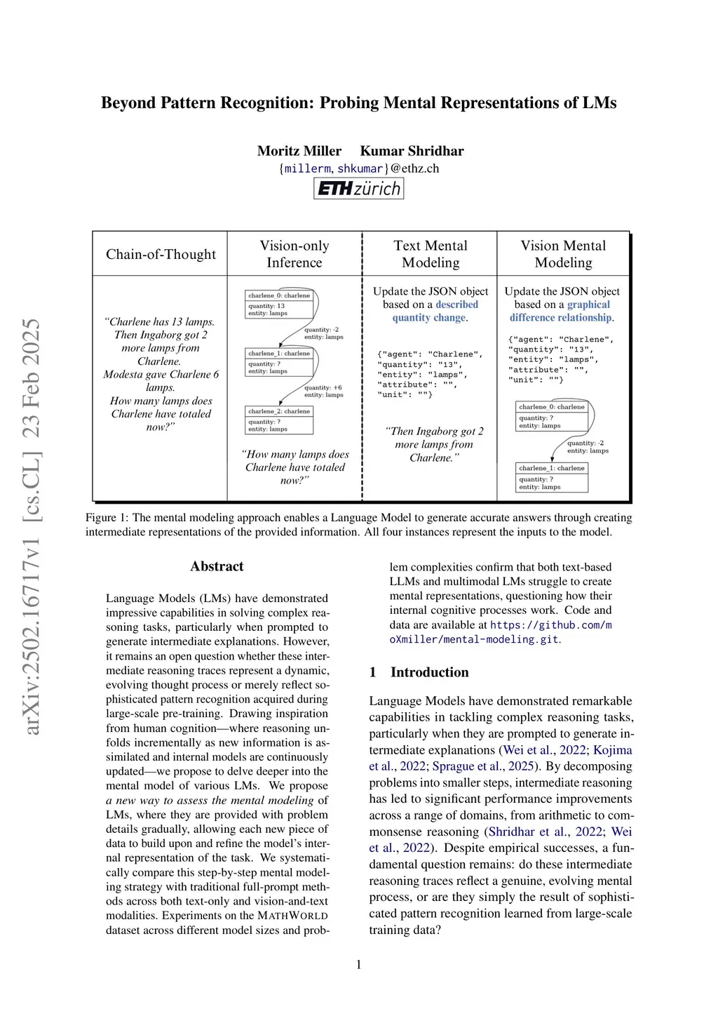 Language Models (LMs) have demonstrated impressive capabilities in solving complex reasoning tasks, particularly when prompted to generate intermediate explanations. However, it remains an open question whether these intermediate reasoning traces represent a dynamic, evolving thought process or merely reflect sophisticated pattern recognition acquired during large scale pre training. Drawing inspiration from human cognition, where reasoning unfolds incrementally as new information is assimilated and internal models are continuously updated, we propose to delve deeper into the mental model of various LMs. We propose a new way to assess the mental modeling of LMs, where they are provided with problem details gradually, allowing each new piece of data to build upon and refine the model's internal representation of the task. We systematically compare this step by step mental modeling strategy with traditional full prompt methods across both text only and vision and text modalities. Experiments on the MathWorld dataset across different model sizes and problem complexities confirm that both text-based LLMs and multimodal LMs struggle to create mental representations, questioning how their internal cognitive processes work.