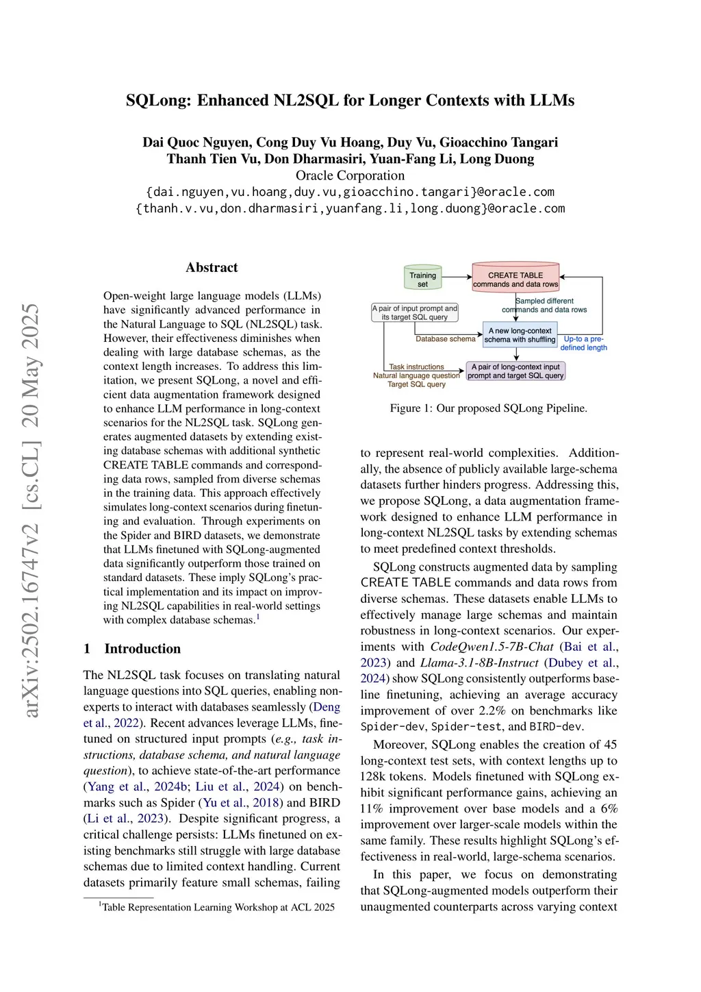 SQLong: Enhanced NL2SQL for Longer Contexts with LLMs