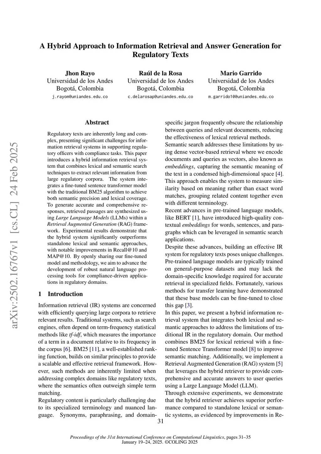 A Hybrid Approach to Information Retrieval and Answer Generation for Regulatory Texts