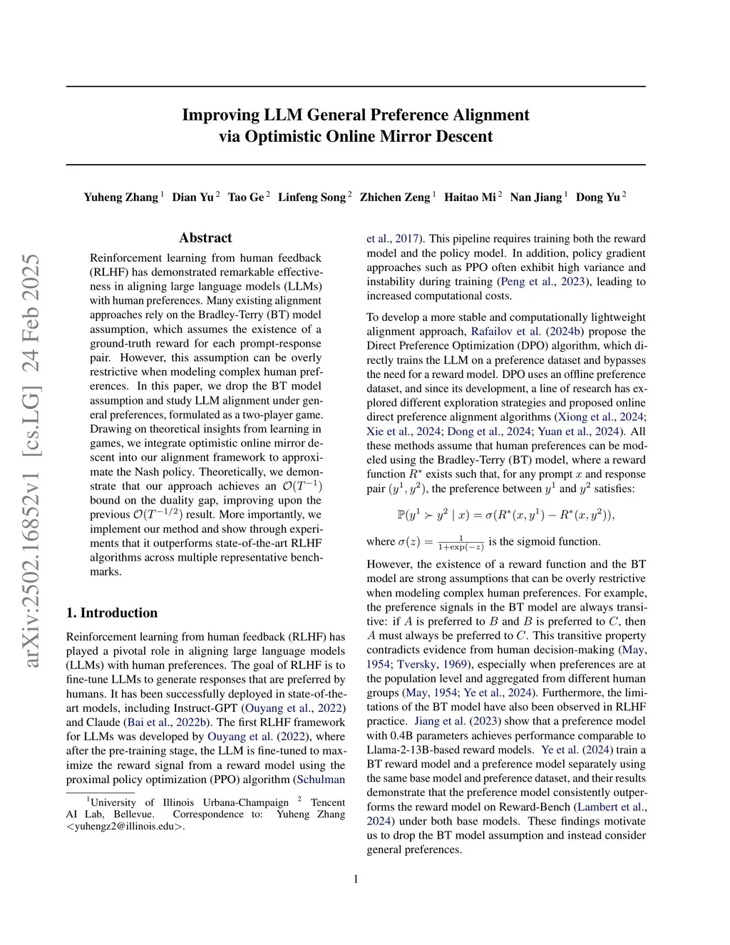 Improving LLM General Preference Alignment via Optimistic Online Mirror Descent