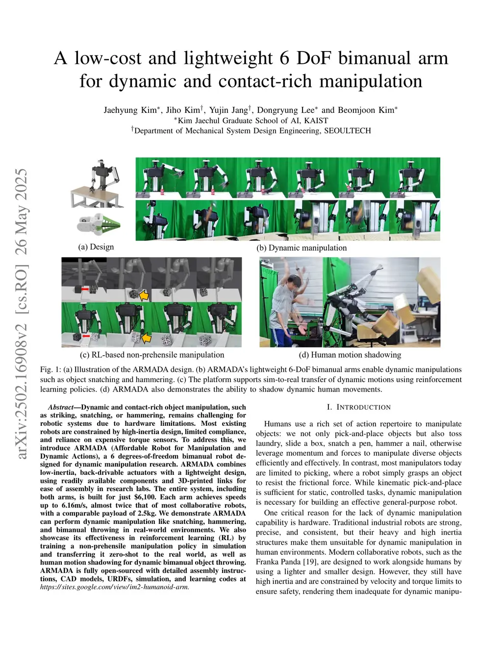 A low-cost and lightweight 6 DoF bimanual arm for dynamic and contact-rich manipulation