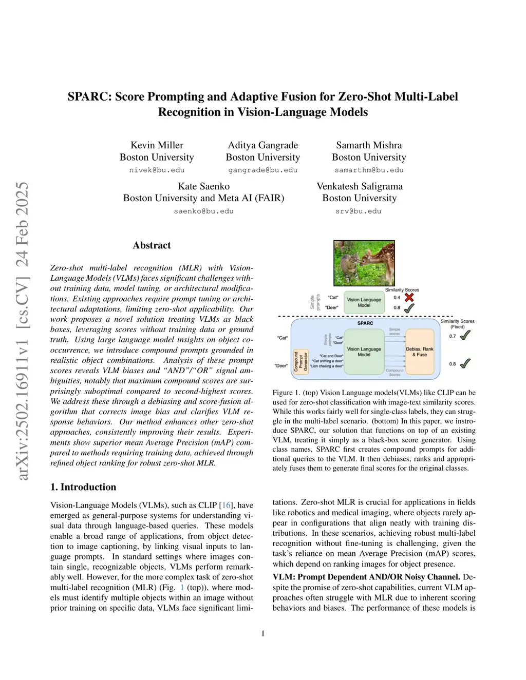 SPARC: Score Prompting and Adaptive Fusion for Zero-Shot Multi-Label Recognition in Vision-Language Models