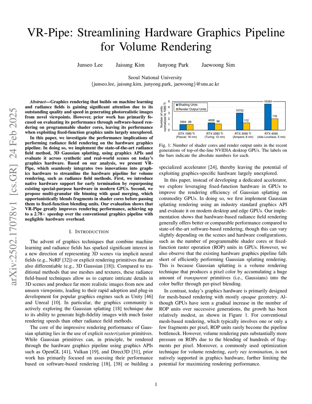 VR-Pipe: Streamlining Hardware Graphics Pipeline for Volume Rendering