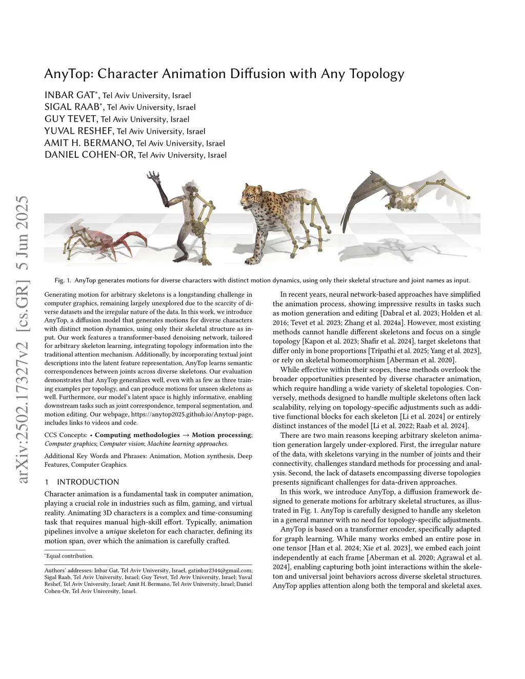 Generating motion for arbitrary skeletons is a longstanding challenge in computer graphics, remaining largely unexplored due to the scarcity of diverse datasets and the irregular nature of the data. In this work, we introduce AnyTop, a diffusion model that generates motions for diverse characters with distinct motion dynamics, using only their skeletal structure as input. Our work features a transformer-based denoising network, tailored for arbitrary skeleton learning, integrating topology information into the traditional attention mechanism. Additionally, by incorporating textual joint descriptions into the latent feature representation, AnyTop learns semantic correspondences between joints across diverse skeletons. Our evaluation demonstrates that AnyTop generalizes well, even with as few as three training examples per topology, and can produce motions for unseen skeletons as well. Furthermore, our model's latent space is highly informative, enabling downstream tasks such as joint correspondence, temporal segmentation and motion editing. Our webpage,this https URL, includes links to videos and code.