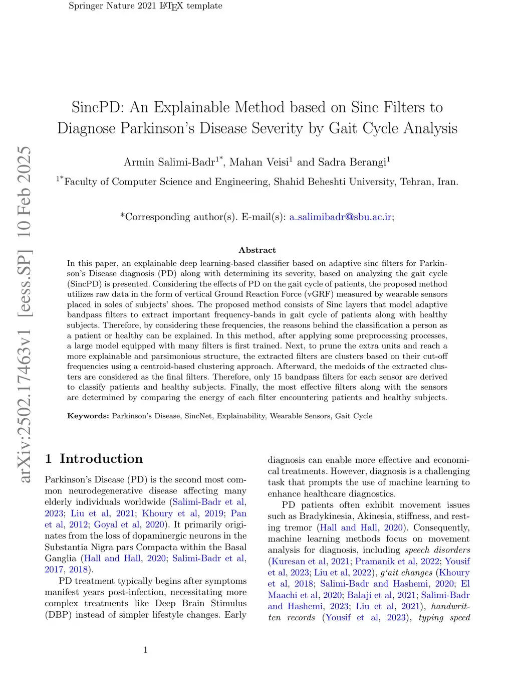 SincPD: An Explainable Method based on Sinc Filters to Diagnose Parkinson's Disease Severity by Gait Cycle Analysis