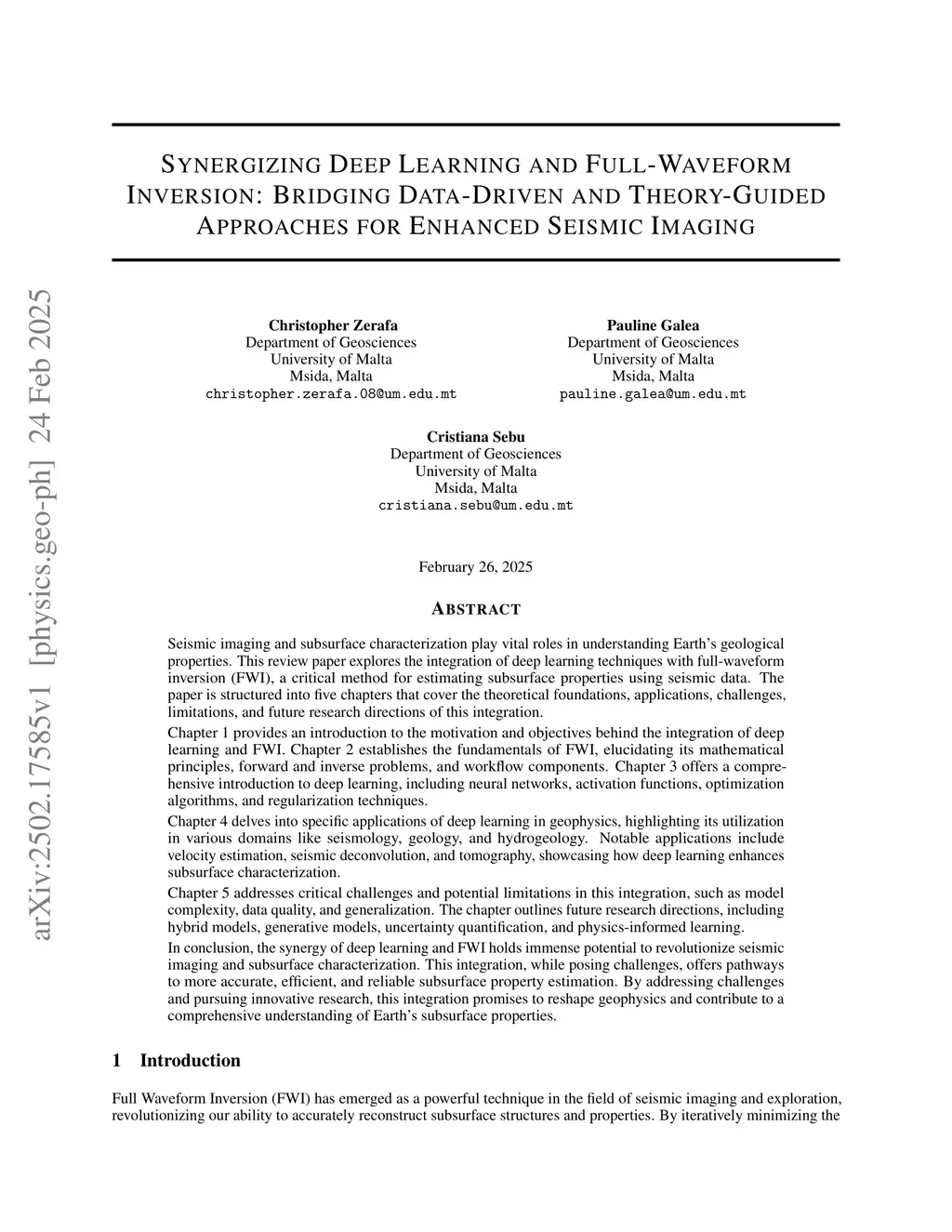 This review explores the integration of deep learning (DL) with full-waveform inversion (FWI) for enhanced seismic imaging and subsurface characterization. It covers FWI and DL fundamentals, geophysical applications (velocity estimation, deconvolution, tomography), and challenges (model complexity, data quality). The review also outlines future research directions, including hybrid, generative, and physics-informed models for improved accuracy, efficiency, and reliability in subsurface property estimation. The synergy between DL and FWI has the potential to transform geophysics, providing new insights into Earth's subsurface.