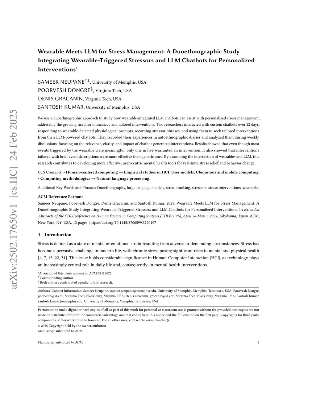 Wearable Meets LLM for Stress Management: A Duoethnographic Study Integrating Wearable-Triggered Stressors and LLM Chatbots for Personalized Interventions