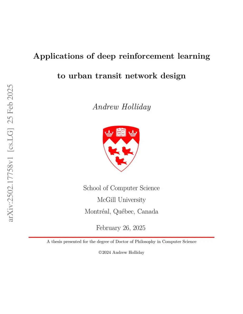 Applications of deep reinforcement learning to urban transit network design