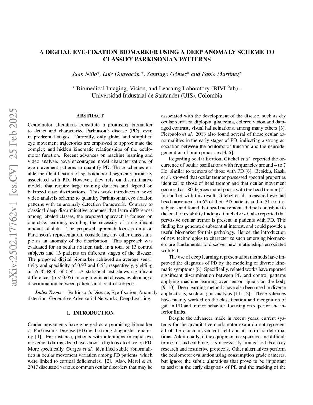 A digital eye-fixation biomarker using a deep anomaly scheme to classify Parkisonian patterns