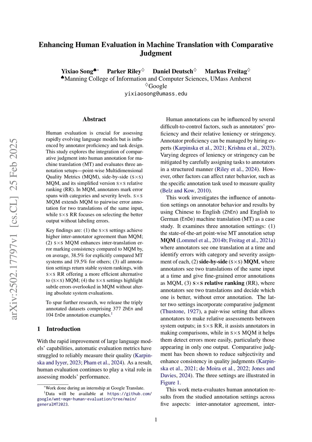 Enhancing Human Evaluation in Machine Translation with Comparative Judgment