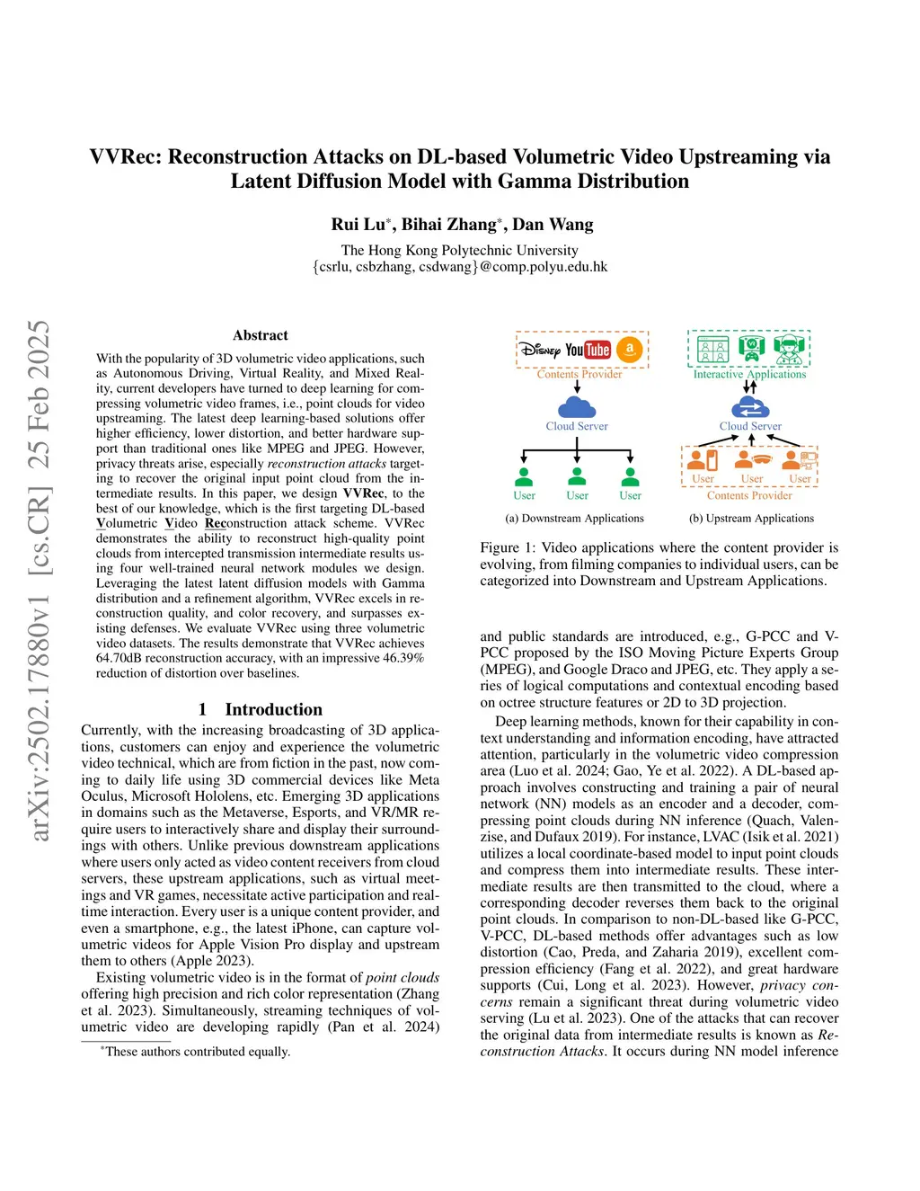VVRec: Reconstruction Attacks on DL-based Volumetric Video Upstreaming via Latent Diffusion Model with Gamma Distribution