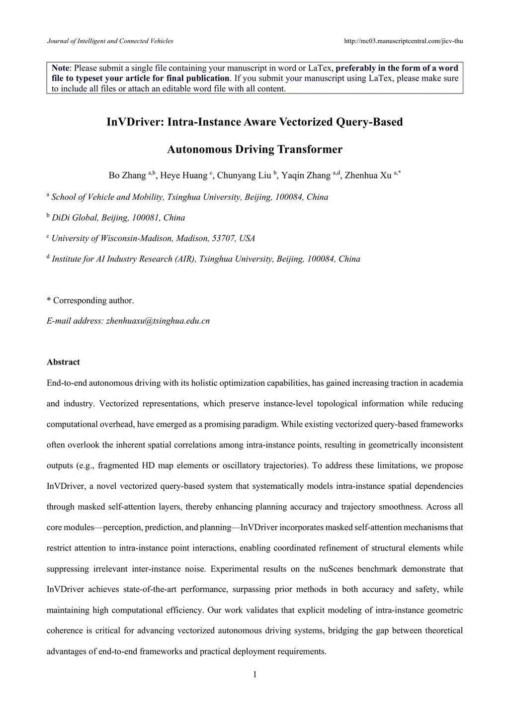 End-to-end autonomous driving with its holistic optimization capabilities, has gained increasing traction in academia and industry. Vectorized representations, which preserve instance-level topological information while reducing computational overhead, have emerged as a promising paradigm. While existing vectorized query-based frameworks often overlook the inherent spatial correlations among intra-instance points, resulting in geometrically inconsistent outputs (e.g., fragmented HD map elements or oscillatory trajectories). To address these limitations, we propose InVDriver, a novel vectorized query-based system that systematically models intra-instance spatial dependencies through masked self-attention layers, thereby enhancing planning accuracy and trajectory smoothness. Across all core modules, i.e., perception, prediction, and planning, InVDriver incorporates masked self-attention mechanisms that restrict attention to intra-instance point interactions, enabling coordinated refinement of structural elements while suppressing irrelevant inter-instance noise. Experimental results on the nuScenes benchmark demonstrate that InVDriver achieves state-of-the-art performance, surpassing prior methods in both accuracy and safety, while maintaining high computational efficiency. Our work validates that explicit modeling of intra-instance geometric coherence is critical for advancing vectorized autonomous driving systems, bridging the gap between theoretical advantages of end-to-end frameworks and practical deployment requirements.