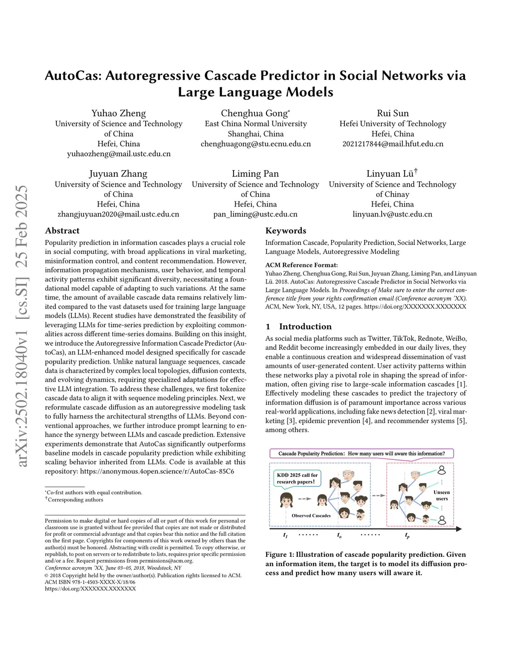 AutoCas: Autoregressive Cascade Predictor in Social Networks via Large Language Models