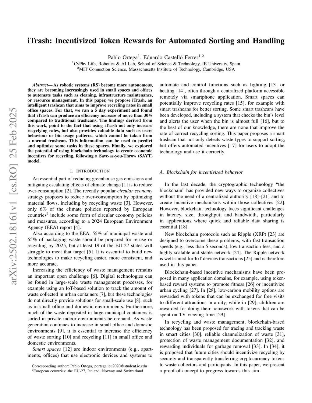 iTrash: Incentivized Token Rewards for Automated Sorting and Handling