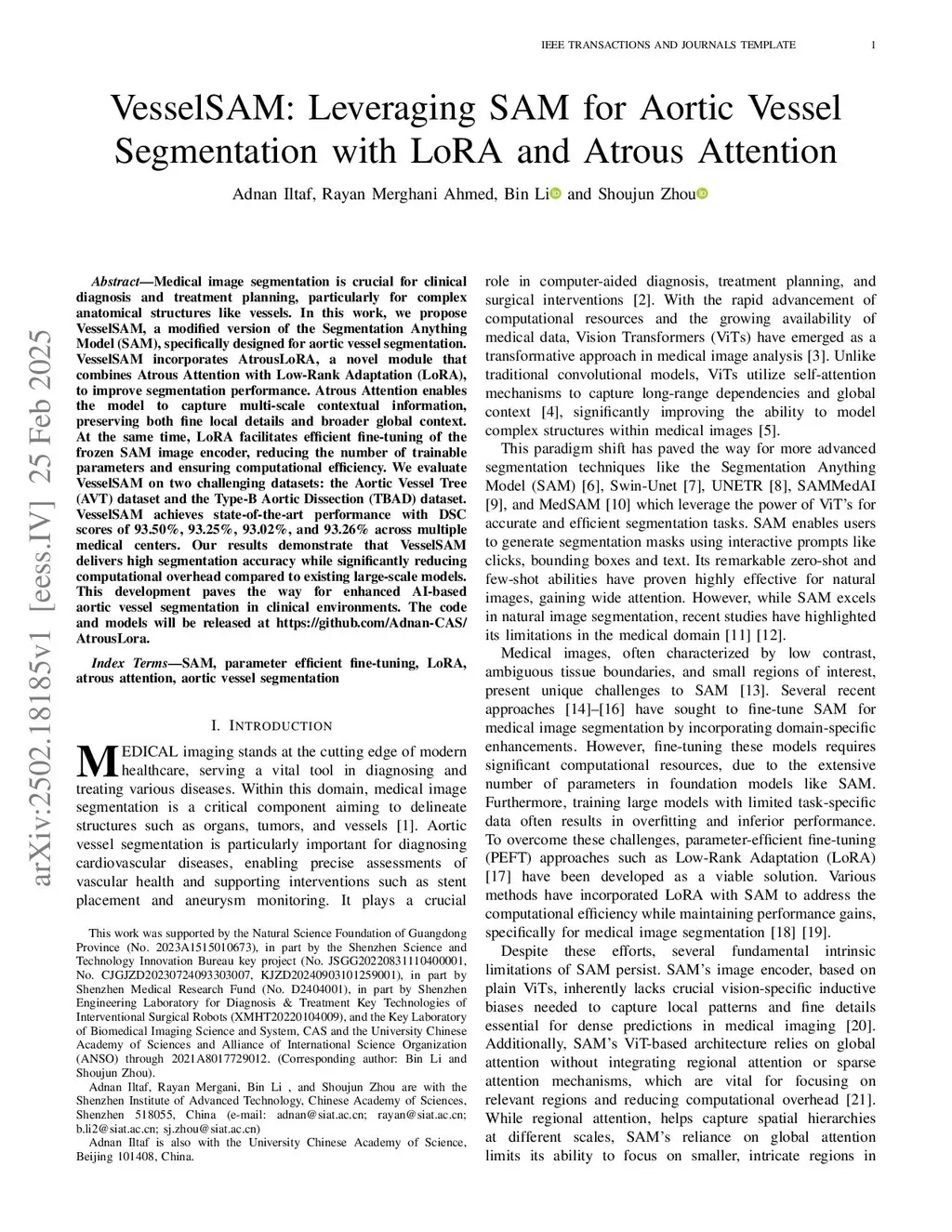 VesselSAM: Leveraging SAM for Aortic Vessel Segmentation with AtrousLoRA