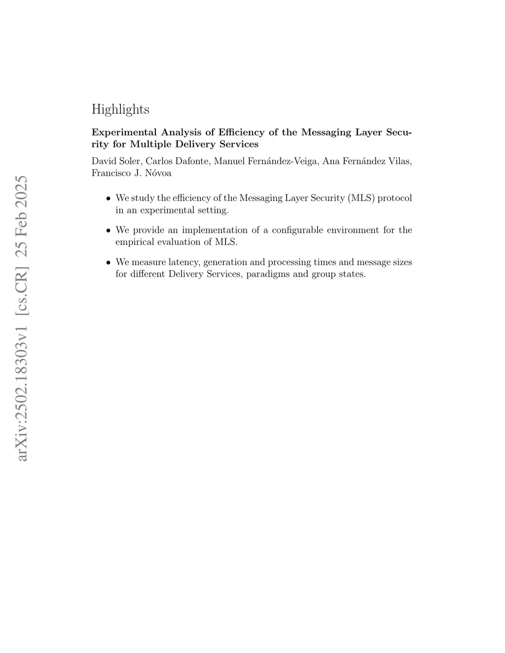 Analysis of Efficiency of the Messaging Layer Security protocol in Experimental Settings