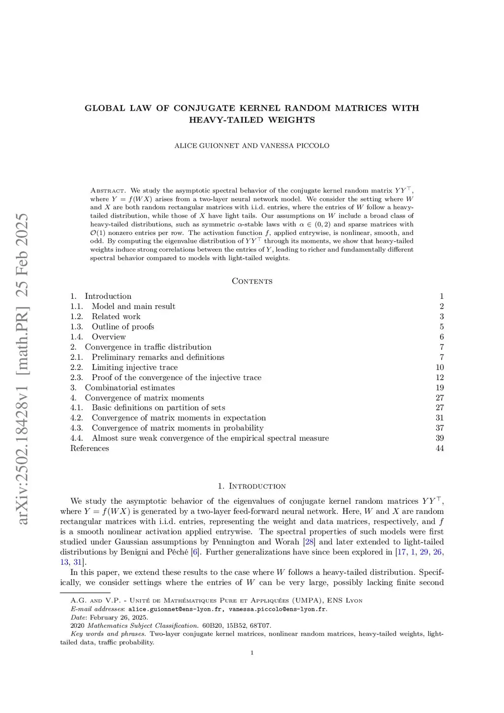 We study the asymptotic spectral distribution of the conjugate kernel random matrix , where arises from a two-layer neural network model. We consider the setting where and are random rectangular matrices with i.i.d.\ entries, where the entries of follow a heavy-tailed distribution, while those of have light tails. Our assumptions on include a broad class of heavy-tailed distributions, such as symmetric -stable laws with and sparse matrices with nonzero entries per row. The activation function , applied entrywise, is bounded, smooth, odd, and nonlinear. We compute the limiting eigenvalue distribution of through its moments and show that heavy-tailed weights induce strong correlations between the entries of , resulting in richer and fundamentally different spectral behavior compared to the light-tailed case.