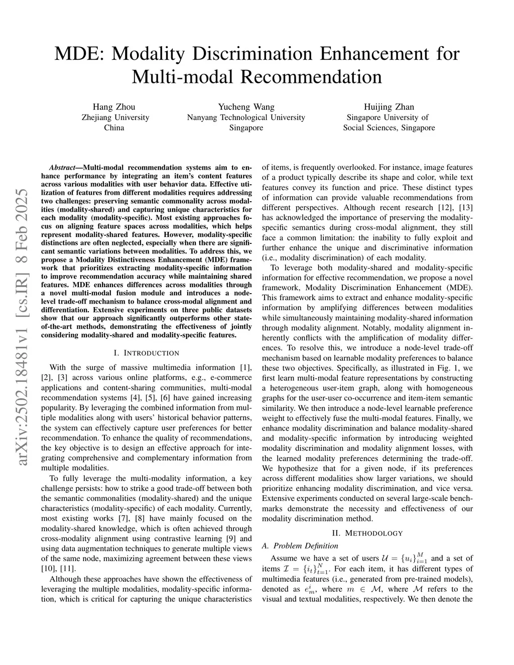 MDE: Modality Discrimination Enhancement for Multi-modal Recommendation