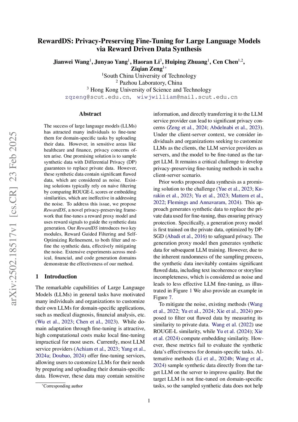 The success of large language models (LLMs) has attracted many individuals to fine-tune them for domain-specific tasks by uploading their data. However, in sensitive areas like healthcare and finance, privacy concerns often arise. One promising solution is to generate synthetic data with Differential Privacy (DP) guarantees to replace private data. However, these synthetic data contain significant flawed data, which are considered as noise. Existing solutions typically rely on naive filtering by comparing ROUGE-L scores or embedding similarities, which are ineffective in addressing the noise. To address this issue, we propose \textit{RewardDS}, a novel privacy-preserving framework that fine-tunes a reward proxy model and uses reward signals to guide the synthetic data generation. Our \textit{RewardDS} introduces two key modules, Reward Guided Filtering and Self-Optimizing Refinement, to both filter and refine the synthetic data, effectively mitigating the noise. Extensive experiments across medical, financial, and code generation domains demonstrate the effectiveness of our method.