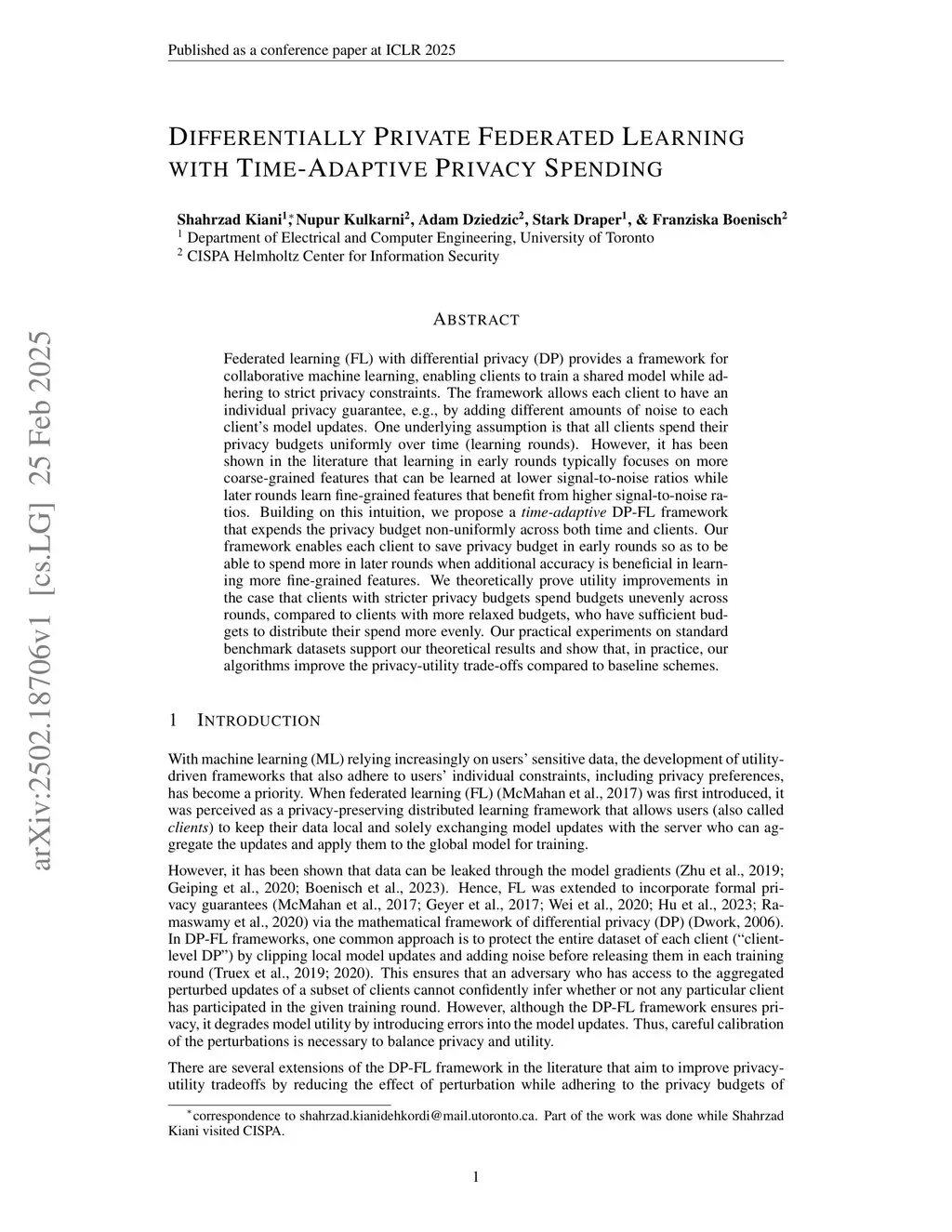 Differentially Private Federated Learning With Time-Adaptive Privacy Spending