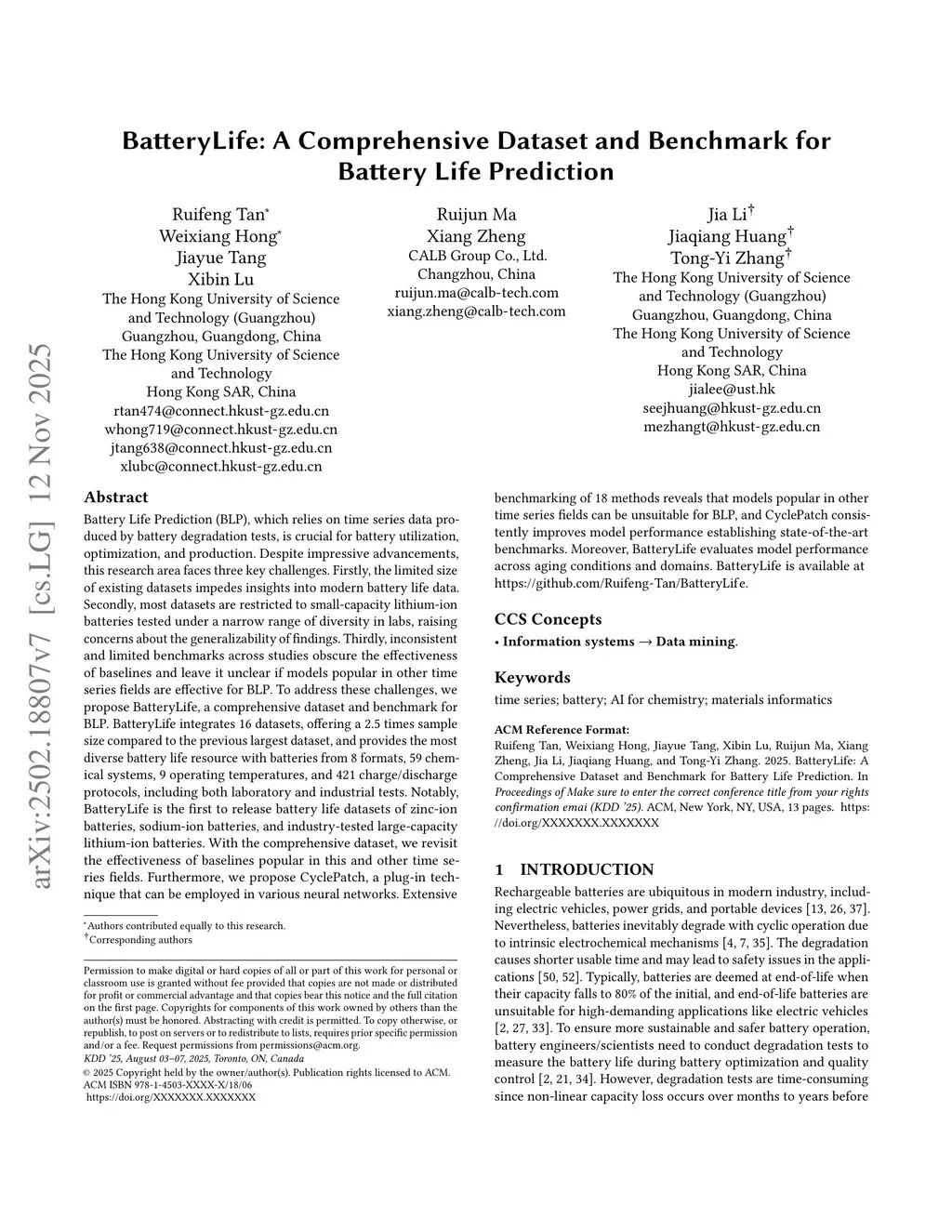 BatteryLife: A Comprehensive Dataset and Benchmark for Battery Life Prediction