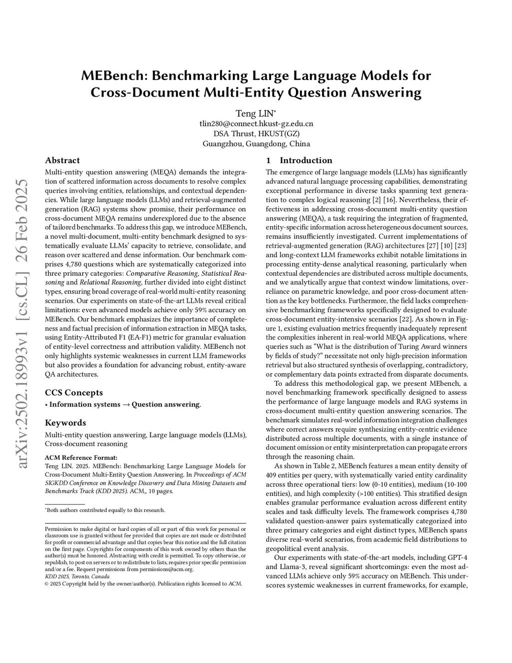 MEBench: Benchmarking Large Language Models for Cross-Document Multi-Entity Question Answering