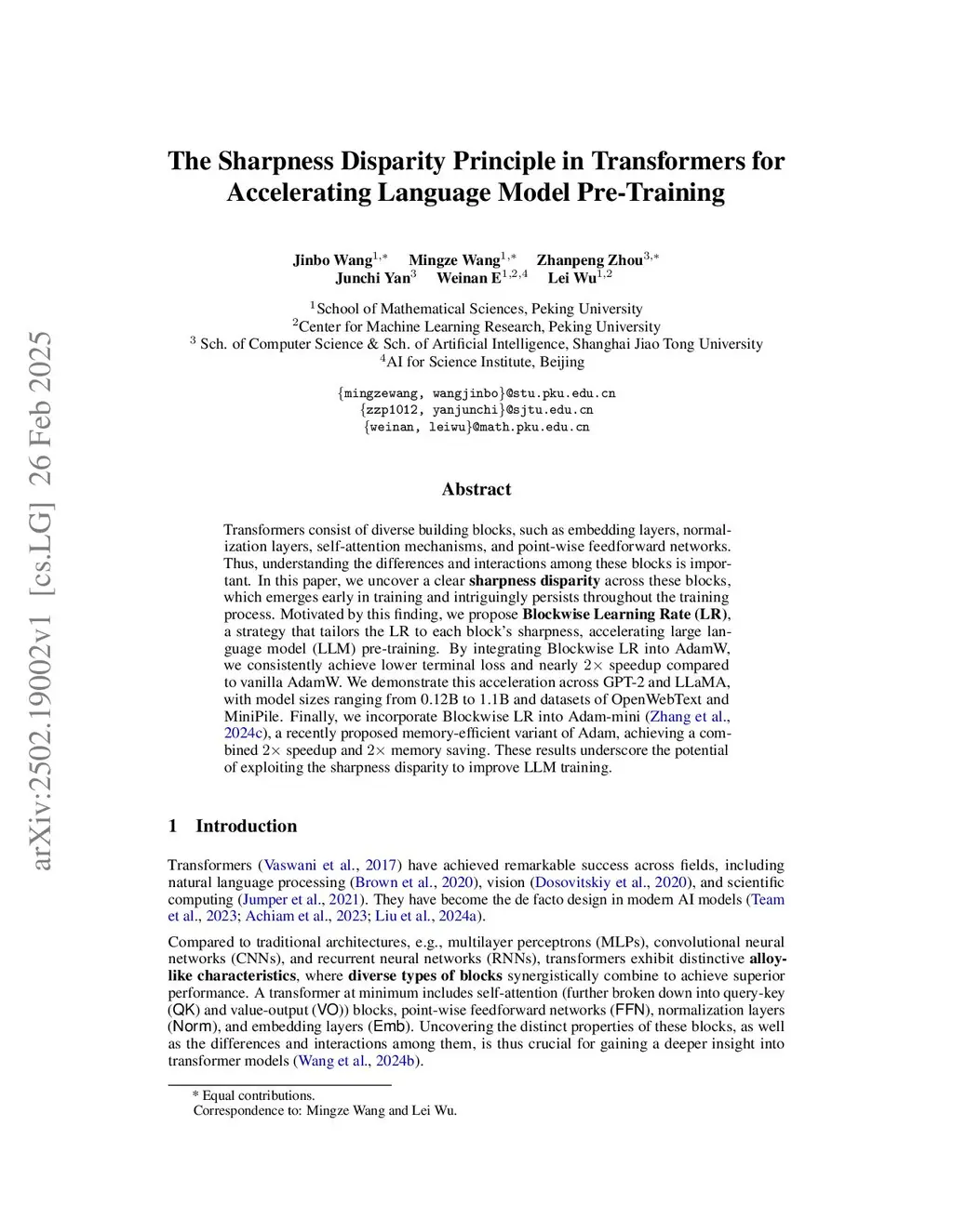 The Sharpness Disparity Principle in Transformers for Accelerating Language Model Pre-Training