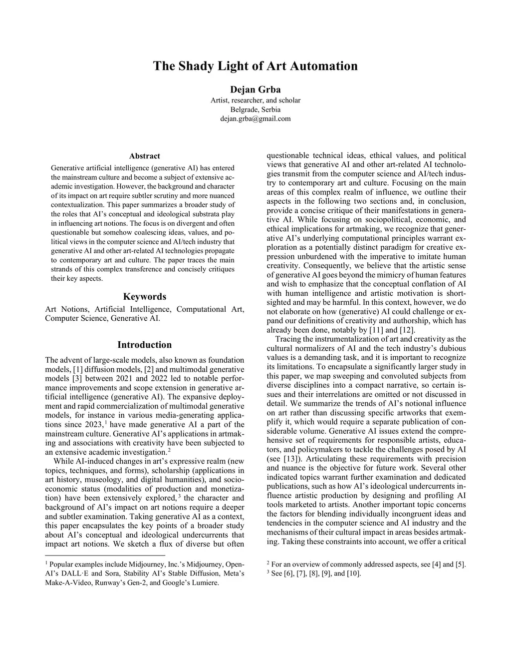 Generative artificial intelligence (generative AI) has entered the mainstream culture and become a subject of extensive academic investigation. However, the character and background of its impact on art require subtler scrutiny and more nuanced contextualization. This paper summarizes a broader study of the roles that AI's conceptual and ideological substrata play in influencing art notions. The focus is on divergent but coalescing and often questionable ideas, values, and political views that generative AI and other art-related AI technologies propagate from the computer science and AI/tech industry to the contemporary art and culture. The paper maps the main areas of this complex relationship and concisely critiques their key aspects.