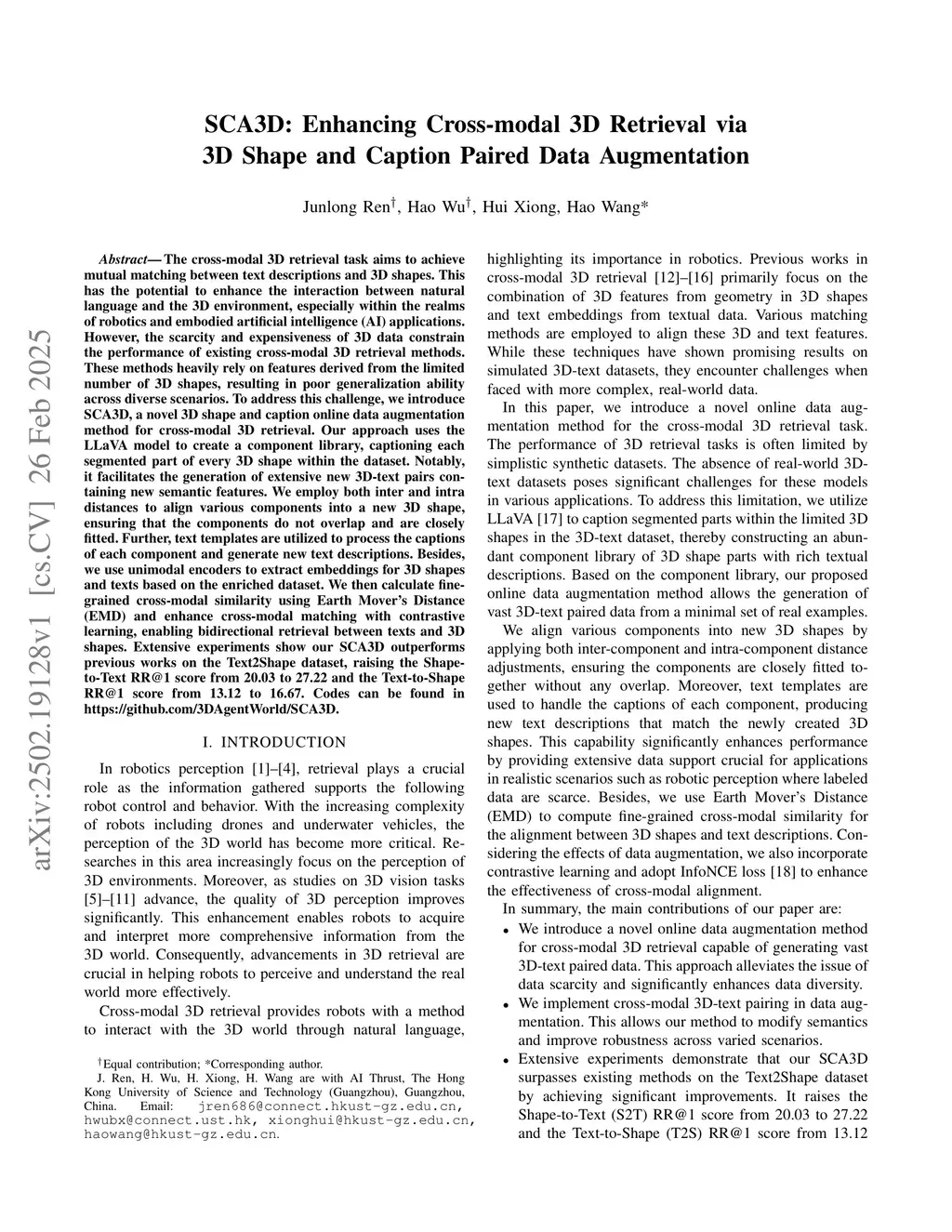 SCA3D: Enhancing Cross-modal 3D Retrieval via 3D Shape and Caption Paired Data Augmentation