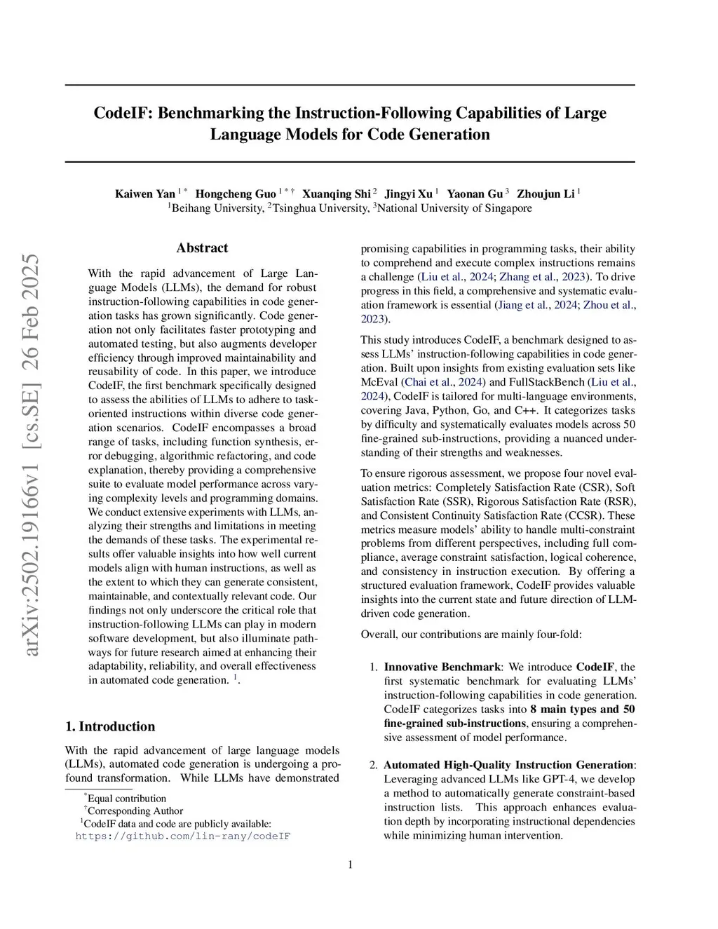 CodeIF: Benchmarking the Instruction-Following Capabilities of Large Language Models for Code Generation