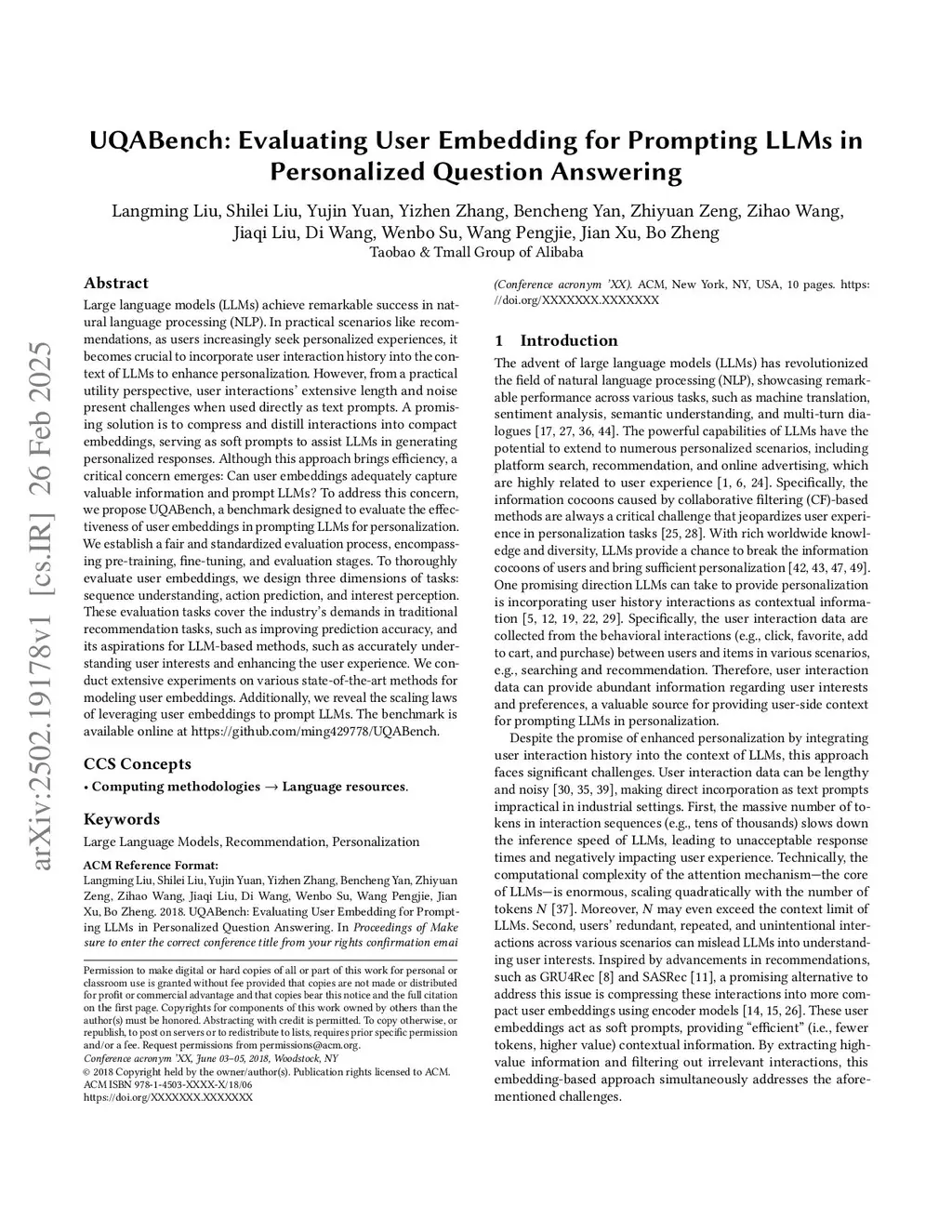 UQABench: Evaluating User Embedding for Prompting LLMs in Personalized Question Answering