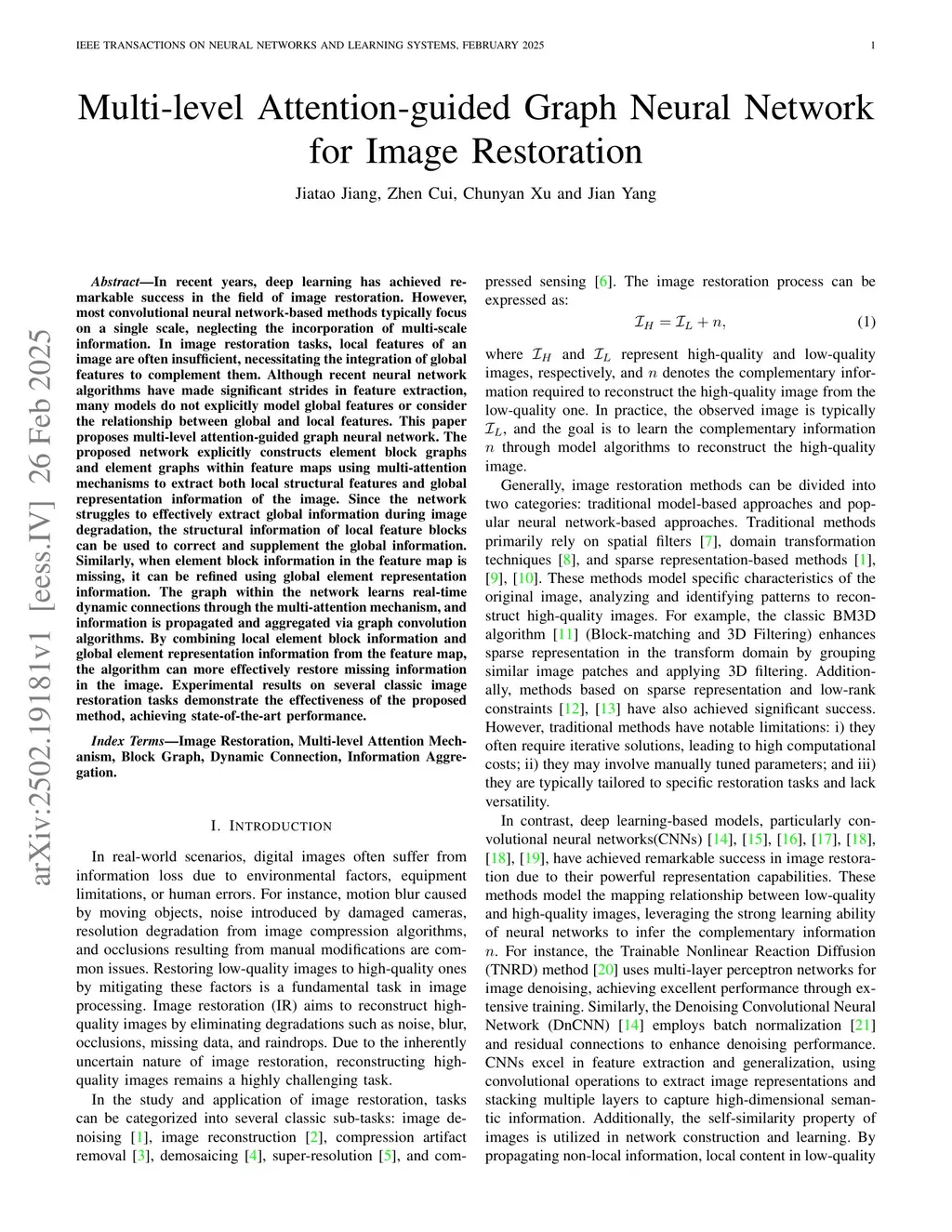 Multi-level Attention-guided Graph Neural Network for Image Restoration