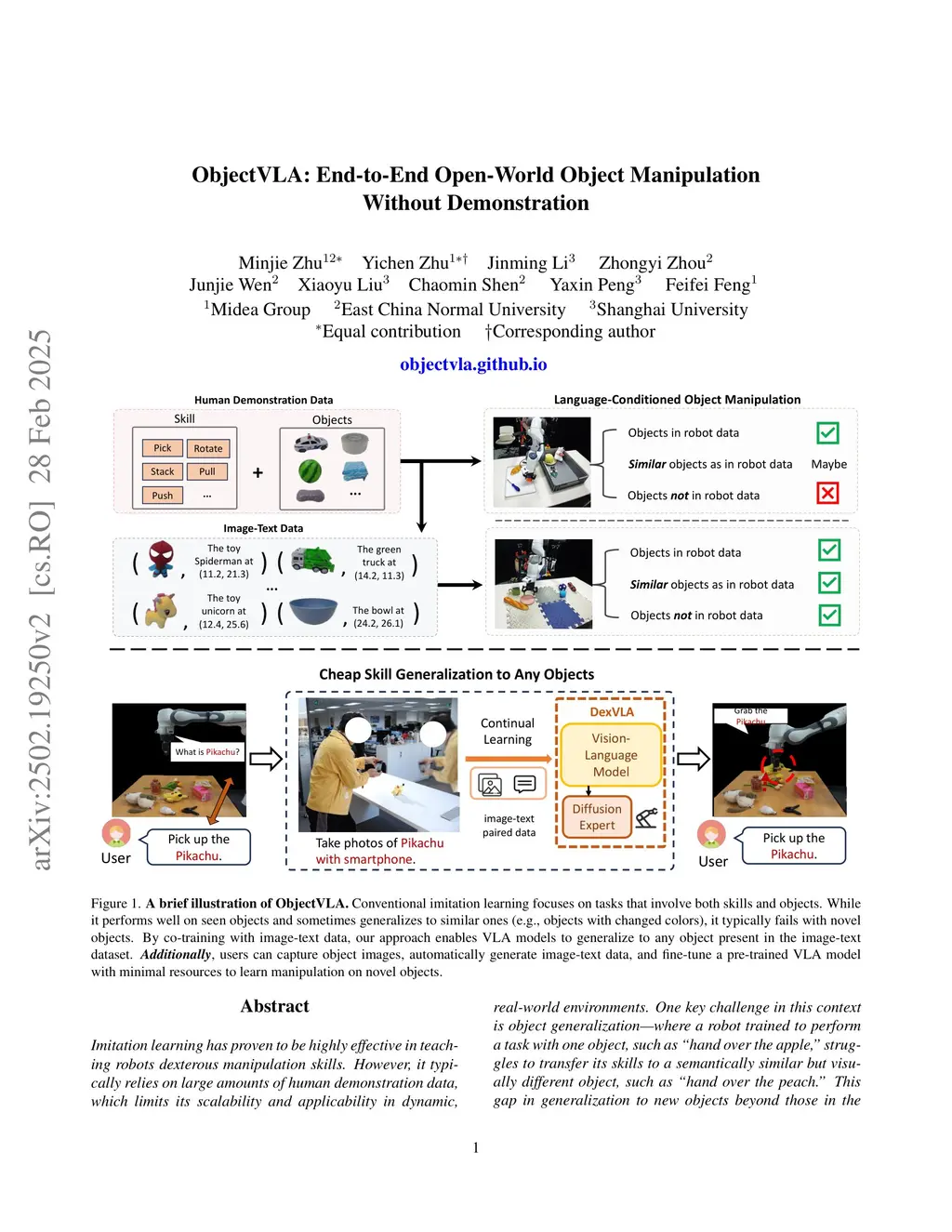 ObjectVLA: End-to-End Open-World Object Manipulation Without Demonstration
