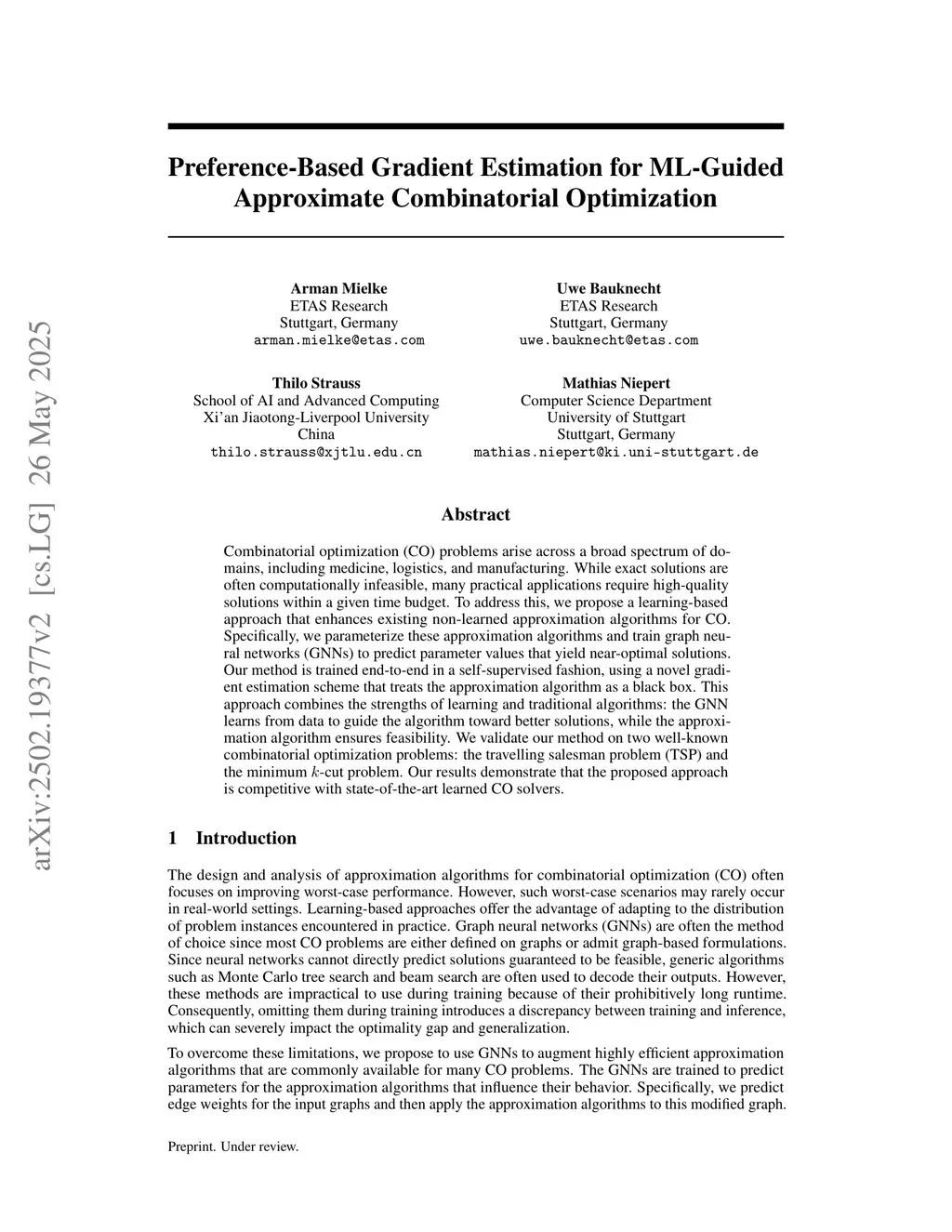 Preference-Based Gradient Estimation for ML-Guided Approximate Combinatorial Optimization