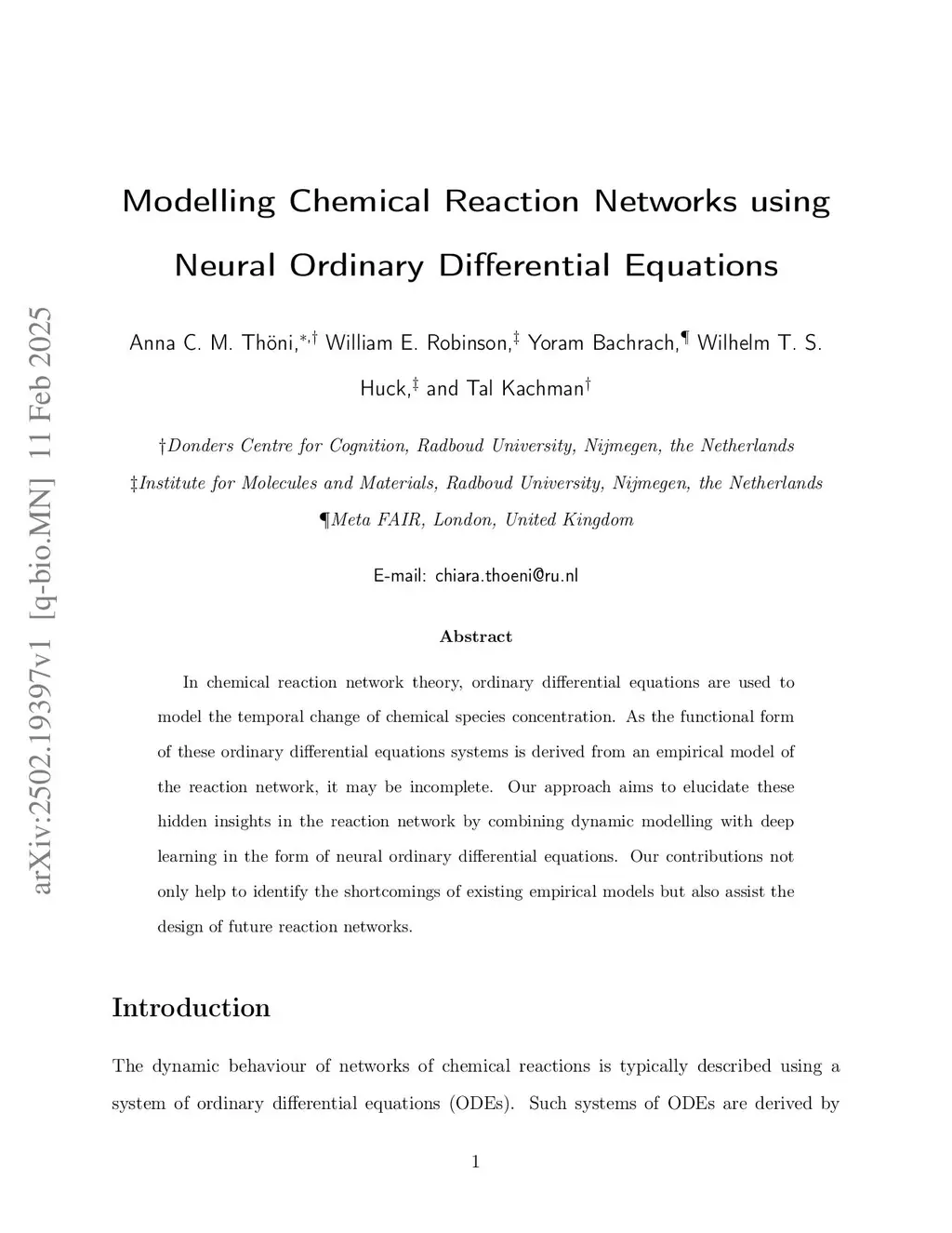 Modelling Chemical Reaction Networks using Neural Ordinary Differential Equations