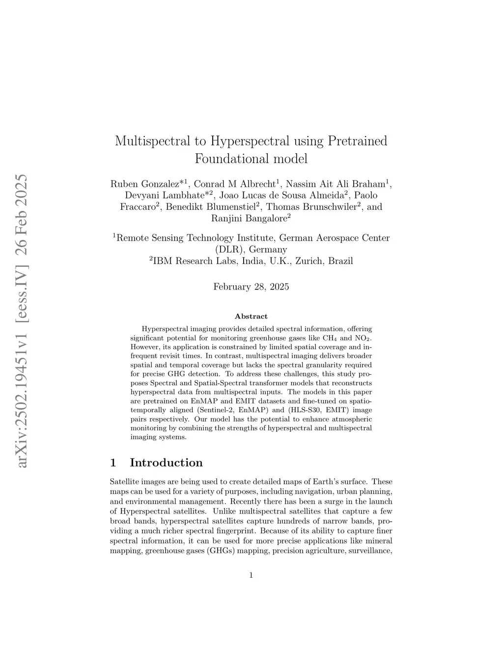 Multispectral to Hyperspectral using Pretrained Foundational model