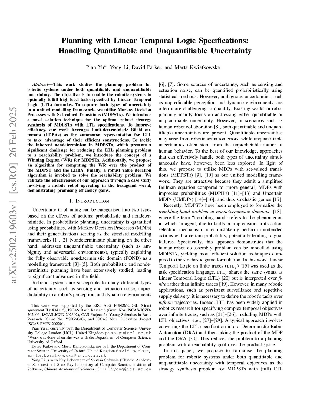 Planning with Linear Temporal Logic Specifications: Handling Quantifiable and Unquantifiable Uncertainty