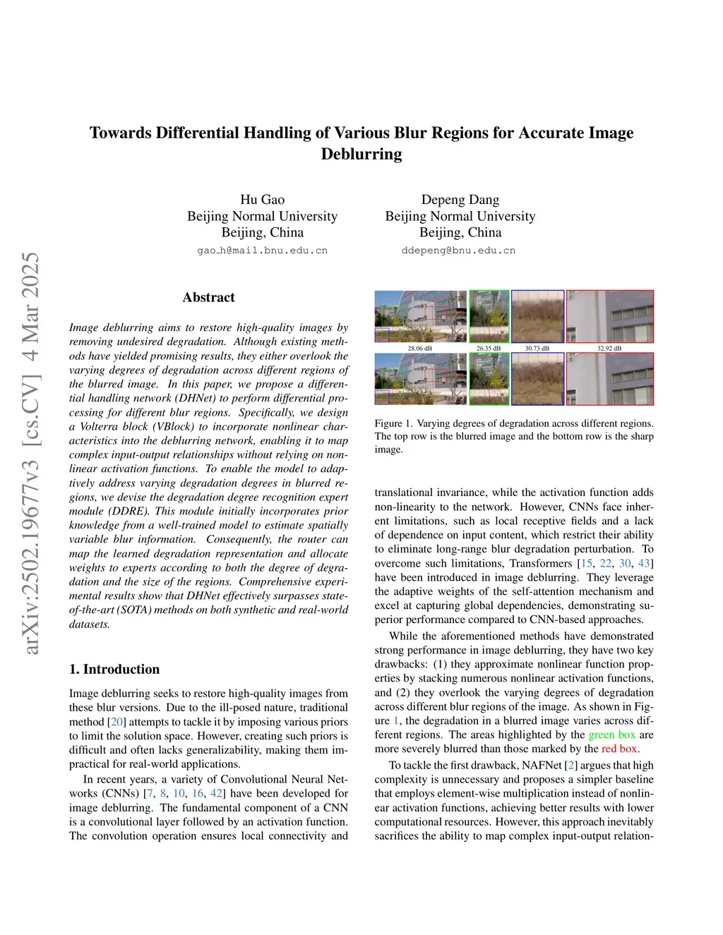 Towards Differential Handling of Various Blur Regions for Accurate Image