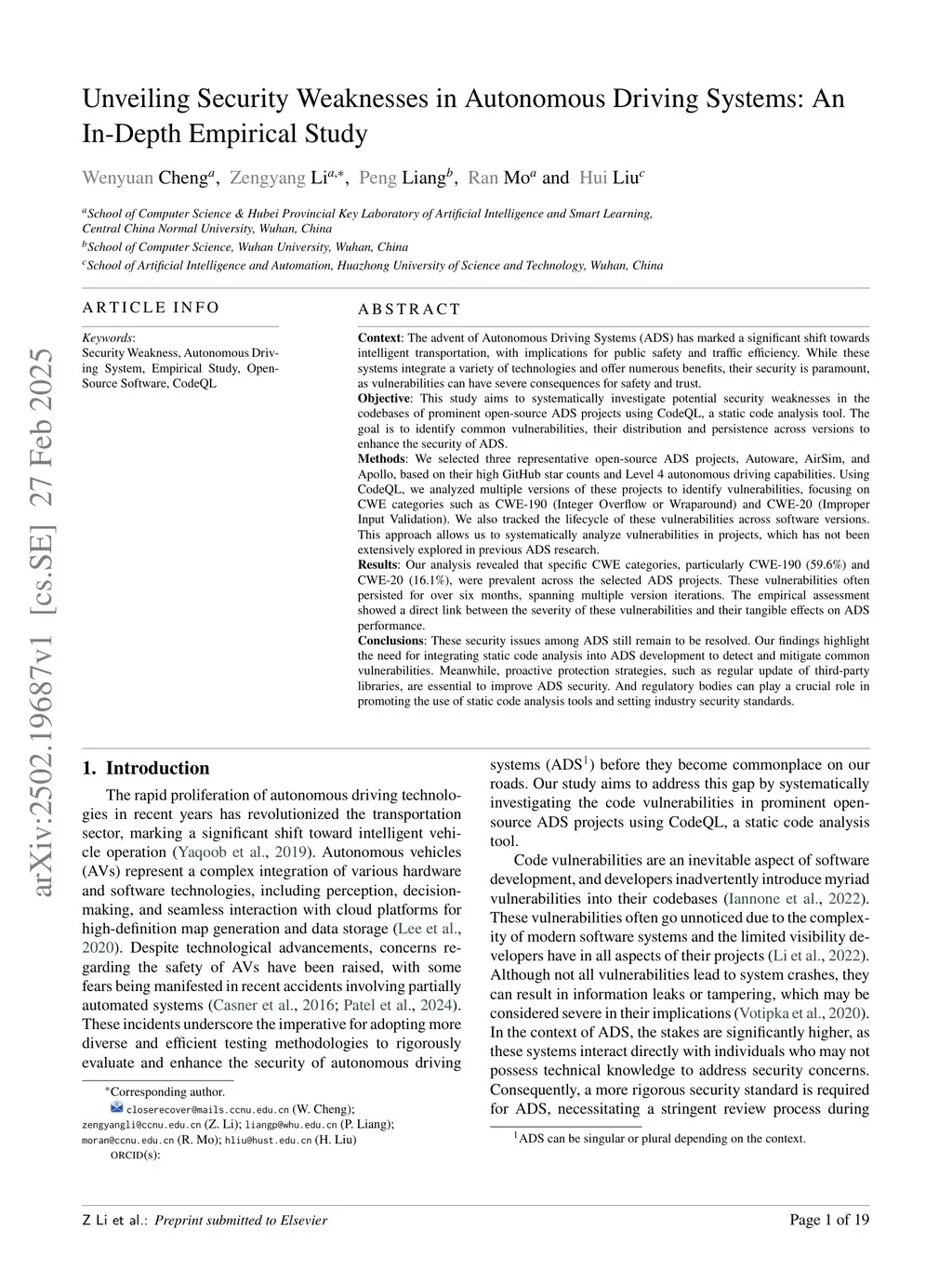 Unveiling Security Weaknesses in Autonomous Driving Systems: An In-Depth Empirical Study
