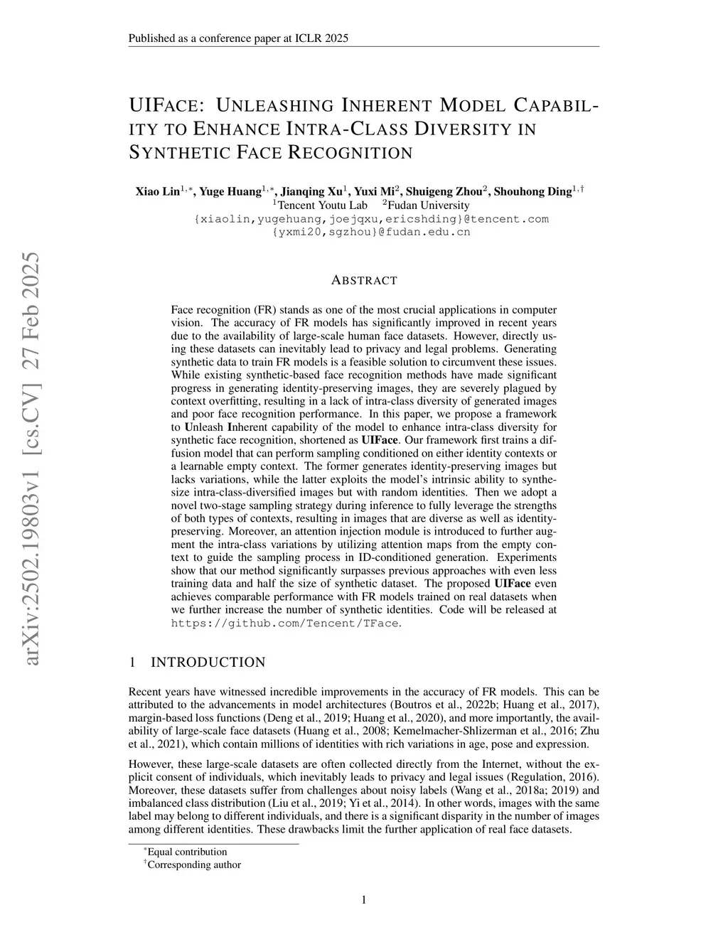 Face recognition (FR) stands as one of the most crucial applications in computer vision. The accuracy of FR models has significantly improved in recent years due to the availability of large-scale human face datasets. However, directly using these datasets can inevitably lead to privacy and legal problems. Generating synthetic data to train FR models is a feasible solution to circumvent these issues. While existing synthetic-based face recognition methods have made significant progress in generating identity-preserving images, they are severely plagued by context overfitting, resulting in a lack of intra-class diversity of generated images and poor face recognition performance. In this paper, we propose a framework to Unleash Inherent capability of the model to enhance intra-class diversity for synthetic face recognition, shortened as UIFace. Our framework first trains a diffusion model that can perform sampling conditioned on either identity contexts or a learnable empty context. The former generates identity-preserving images but lacks variations, while the latter exploits the model's intrinsic ability to synthesize intra-class-diversified images but with random identities. Then we adopt a novel two-stage sampling strategy during inference to fully leverage the strengths of both types of contexts, resulting in images that are diverse as well as identitypreserving. Moreover, an attention injection module is introduced to further augment the intra-class variations by utilizing attention maps from the empty context to guide the sampling process in ID-conditioned generation. Experiments show that our method significantly surpasses previous approaches with even less training data and half the size of synthetic dataset. The proposed UIFace even achieves comparable performance with FR models trained on real datasets when we further increase the number of synthetic identities.