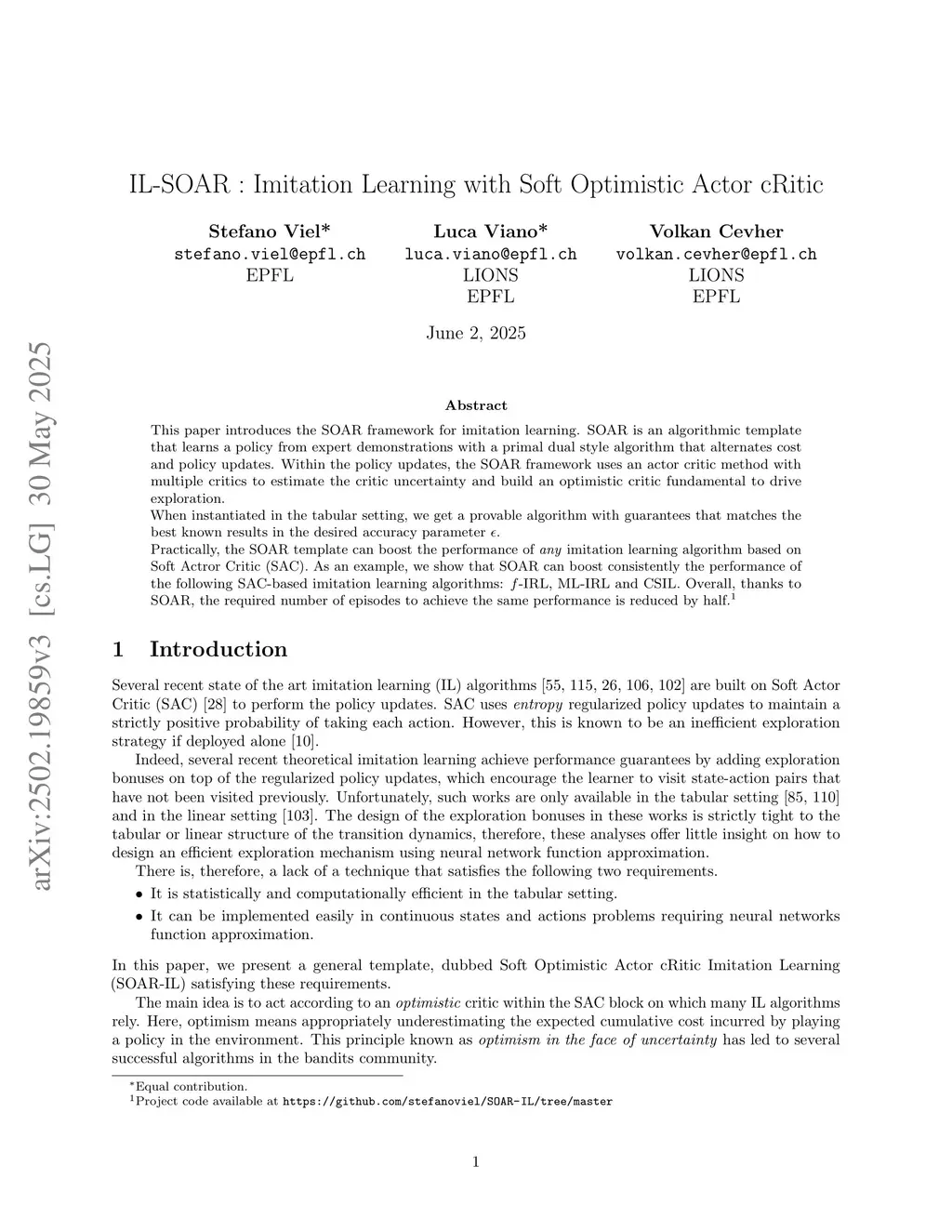 IL-SOAR : Imitation Learning with Soft Optimistic Actor cRitic