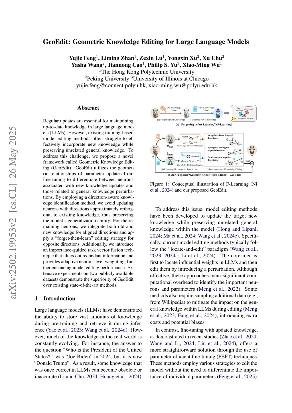 GeoEdit: Geometric Knowledge Editing for Large Language Models