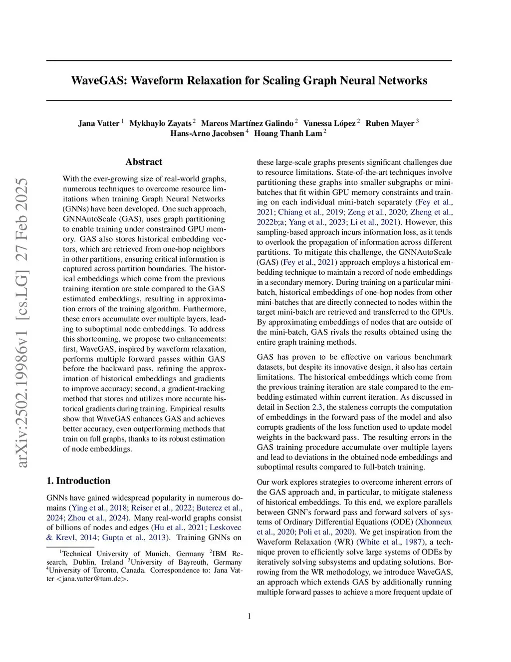 With the ever-growing size of real-world graphs, numerous techniques to overcome resource limitations when training Graph Neural Networks (GNNs) have been developed. One such approach, GNNAutoScale (GAS), uses graph partitioning to enable training under constrained GPU memory. GAS also stores historical embedding vectors, which are retrieved from one-hop neighbors in other partitions, ensuring critical information is captured across partition boundaries. The historical embeddings which come from the previous training iteration are stale compared to the GAS estimated embeddings, resulting in approximation errors of the training algorithm. Furthermore, these errors accumulate over multiple layers, leading to suboptimal node embeddings. To address this shortcoming, we propose two enhancements: first, WaveGAS, inspired by waveform relaxation, performs multiple forward passes within GAS before the backward pass, refining the approximation of historical embeddings and gradients to improve accuracy; second, a gradient-tracking method that stores and utilizes more accurate historical gradients during training. Empirical results show that WaveGAS enhances GAS and achieves better accuracy, even outperforming methods that train on full graphs, thanks to its robust estimation of node embeddings.