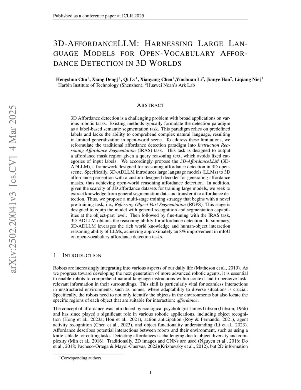 3D-AffordanceLLM: Harnessing Large Language Models for Open-Vocabulary Affordance Detection in 3D Worlds