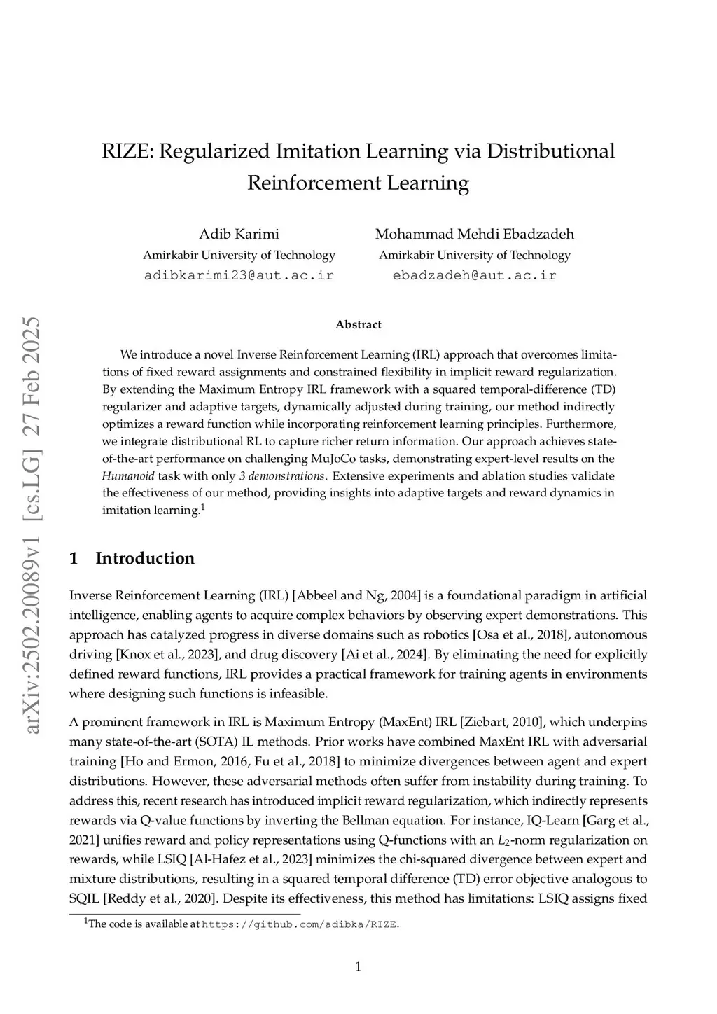 RIZE: Adaptive Regularization for Imitation Learning